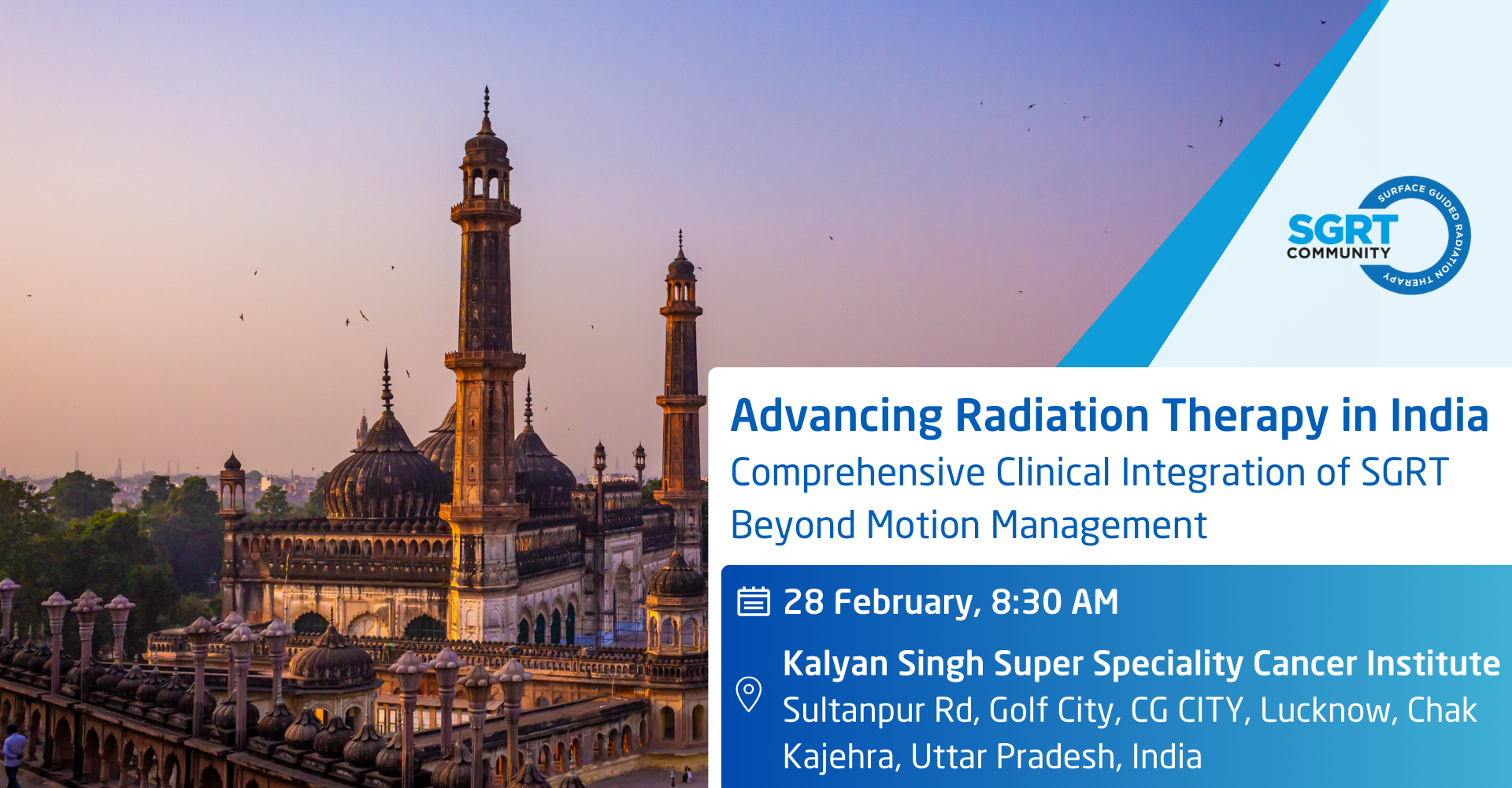 Join us for the SGRT India Community Meeting, taking place in Lucknow at the Kalyan Singh Super Speciality Cancer Institute & Hospital.