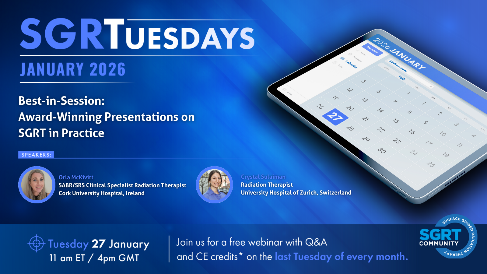 SGRTuesdays are short, free, SGRT-focused webinars on the last Tuesday of every month - with CE credits.